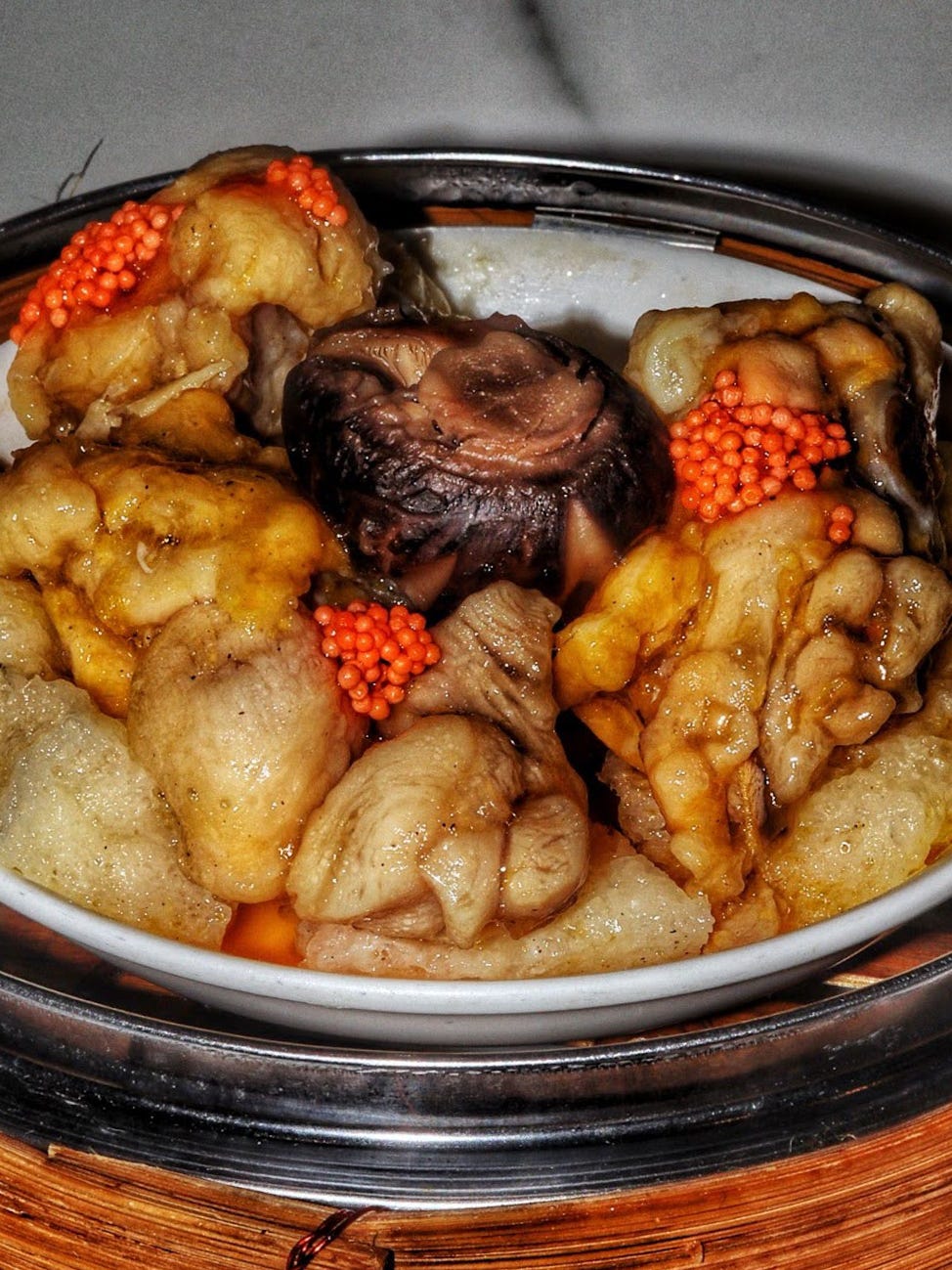 The elasticity of this muscle makes for a spectacularly spongy and tender guest star in steamed dim sum dishes--a shining, brothy, briney accompaniment to something as simple as chicken thigh and shiitake mushroom. Maw is said to support fertility, though Western medicine is unsure how; ironically, the bladders also were used as condoms in the ancient and Middle Ages.