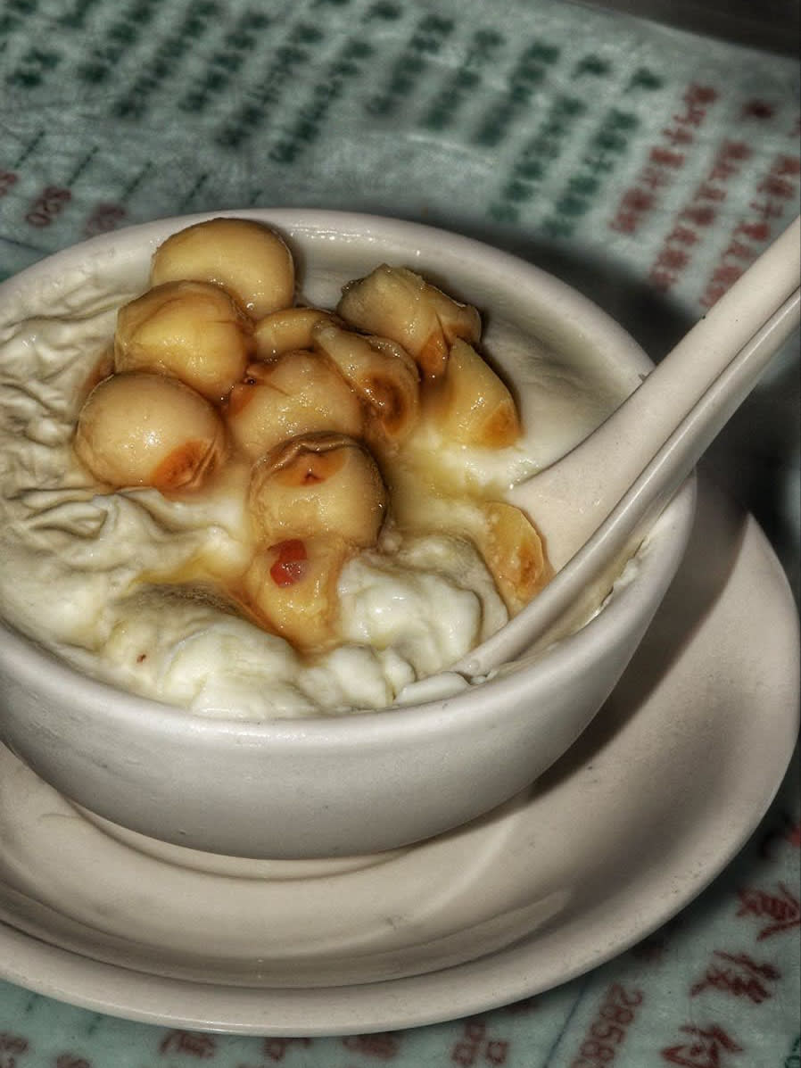 To enjoy it, I’d actually suggest a day trip outside of Hong Kong to Macau, an hourlong ferry away. At Leitaria I Son (Yee Shun Milk Company), a pure canvas of milk pudding can be garnished to order in about twenty ways, from served warm with starchy lotus seed (pictured) to cold with apricot juice, all while contemplating Portuguese colonial influence.